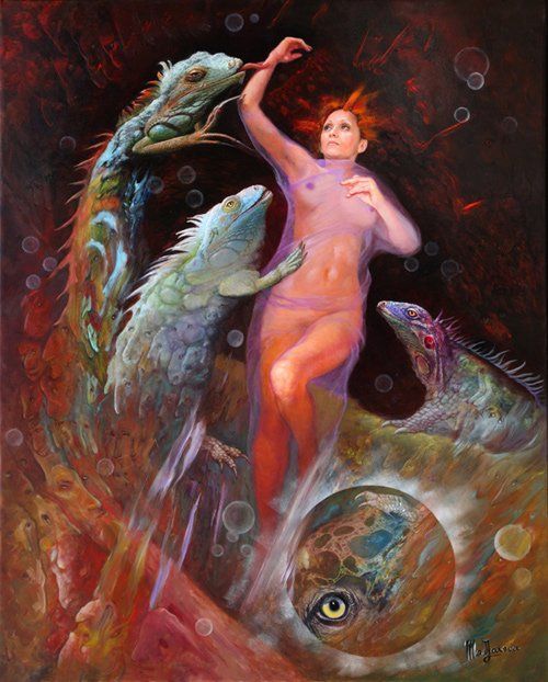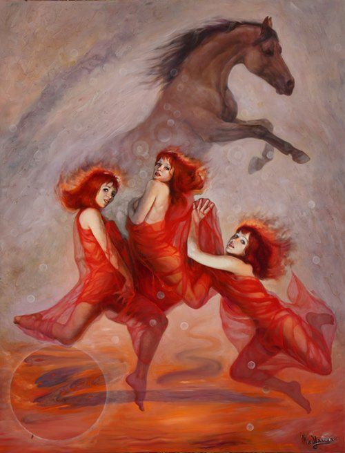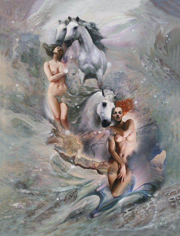 These are details of paintings by painters : Istvan Sandorfi, Léonor Fini, Di Maccio, Mad-Jarova, Tomas Alen Kopera, Ricardo Fernandez Ortega, Yves Thomas, Juan Medina,