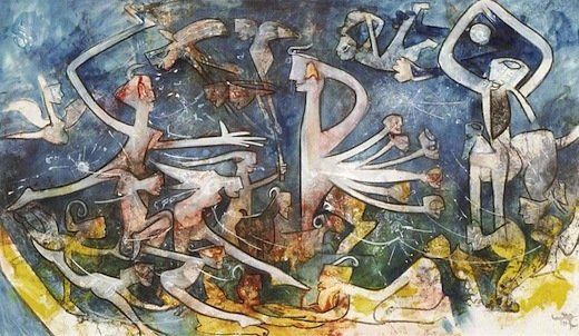 Dit zijn details van schilderijen van schilders: Max Ernst, René Magritte, Salvador Dali, Alberto Giacometti, Bacon, William Baziotes, Ruberto Matta