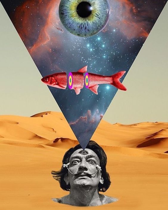 Это детали картин художников: Макса Эрнста, Рене Магритта, Сальвадора Дали, Альберто Джакометти, Бэкона, Уильяма Базиотес, Руберто Матта.